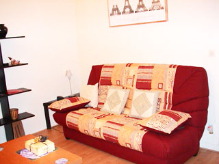 Un canapé lit 2 places de trés bonne qualité et trés confortable : Matelas de type "Capflex" mousse de polyrethane épaisseur 17 cm ,une armoire une table basse,un bureau, une table à manger ,deux chaises, un halogene ,deux lampes de chevet ,un bureau ,une bibliothèque,un téleviseur couleur 55 cm ,un magnetoscope multistandard(comptatible NTSC)une chaine hi fi stereo avec CD,un coffre- fort personnel à digicode ,un radiateur.Pour toute location le linge est fournit GRATUITEMENT c.a.d: les serviettes de toilettes,les draps, couette ,housse de couette ,oreillers,etc.Possibilité de couchage pour un jeune