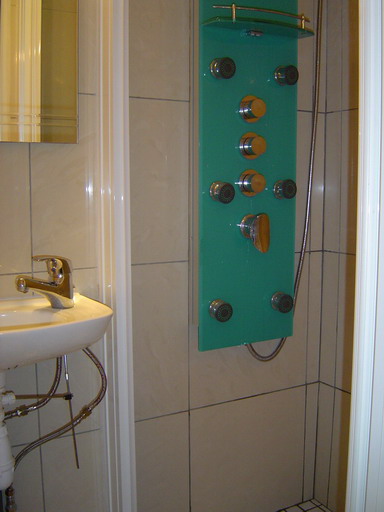 constitué , avec cabine de douche hydrothérapie multijet , lavabo et wc suspendu .
