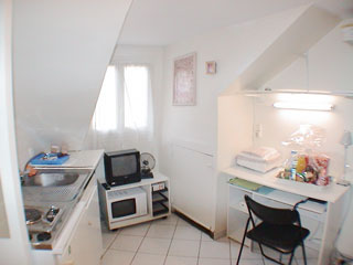 Attention il s'agit d'une petite surface d'environ 12 m/2 (base indicative non contractuelle)au 3em étage (sans ascenseur )avec une fenêtre donnant sur la cour d'un petit immeuble du 18em siècle . Elle est petite mais bien aménagée et optimisée.